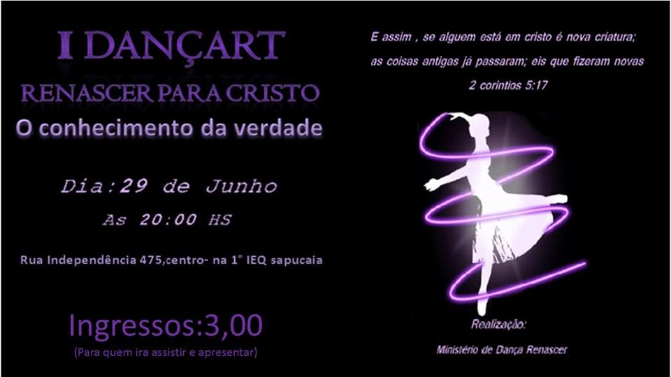 Nós do Ministério de Dança Renascer e GMJ convida-mos a todos para participarem da Mostra de dança que realizaremos no dia 29 de junho!!!!!